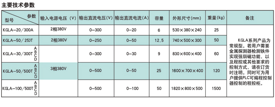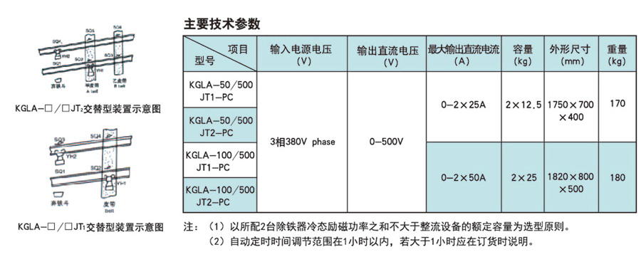 KGLA-口/口JT系列整流控制設(shè)備與我公司除鐵器RCDB系列及RCDP系列配套使用,采用二路三相橋式半控