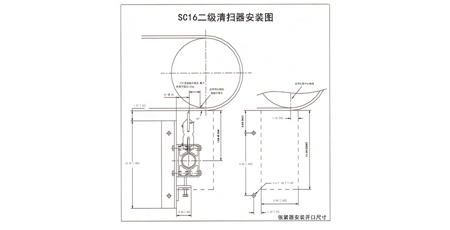 為獲得好的使用效果,產(chǎn)品必須安裝在圖中所示A點(diǎn)與B點(diǎn)之間,不能安裝在超過B點(diǎn)至滾輪處。如果必須要刀片安裝在A點(diǎn)之后(或者刀片距B點(diǎn)的距離超過250mm),在皮帶清潔區(qū)內(nèi)必須安裝一個(gè)惰輪,其位置距刀片同皮帶接觸點(diǎn)后大約80mm。