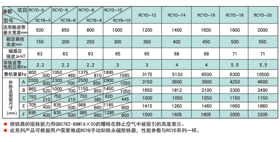該系列除鐵器是根據(jù)我廠技術(shù)研制出來的一種可取代電磁帶式除鐵器的新型除鐵器。該系列除鐵器采用高性能稀土釹鐵硼材料作為磁系,其性能指標(biāo)遠(yuǎn)遠(yuǎn)超過JT7689-2012《懸掛式電磁除鐵器》標(biāo)準(zhǔn)的要求。