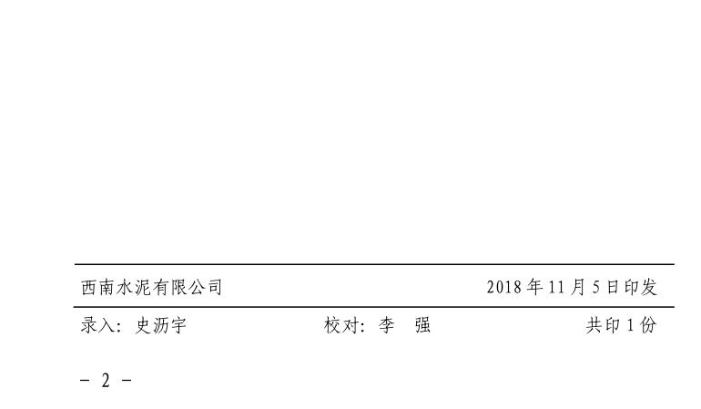 “西南水泥有限公司關(guān)于提前籌劃2019年春季檢修和優(yōu)先技改項(xiàng)目計(jì)劃項(xiàng)目”